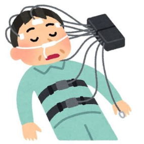 睡眠時無呼吸症候群の検査には大きく分けて,簡易検査と精密検査があります。精密検査は終夜ポリソムノグラフィー検査(PSG検査:Polysomnography examination)と呼ばれます。