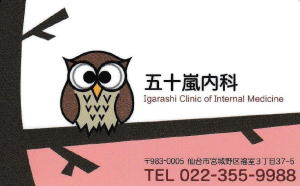 ふくろうは日本でも縁起がよく,ヨーロッパでも知恵の象徴,賢者を表すイメージを持ち,先見性をシンボライズしたモチーフとして,地域住民のみなさまをはじめ,仕事で忙しく時間のない方々,御家庭で育児や介護,御家族の健康管理を気遣っておられる方々の健康維持のお力になりたいという願いを込め,五十嵐内科のロゴマークとして設定。